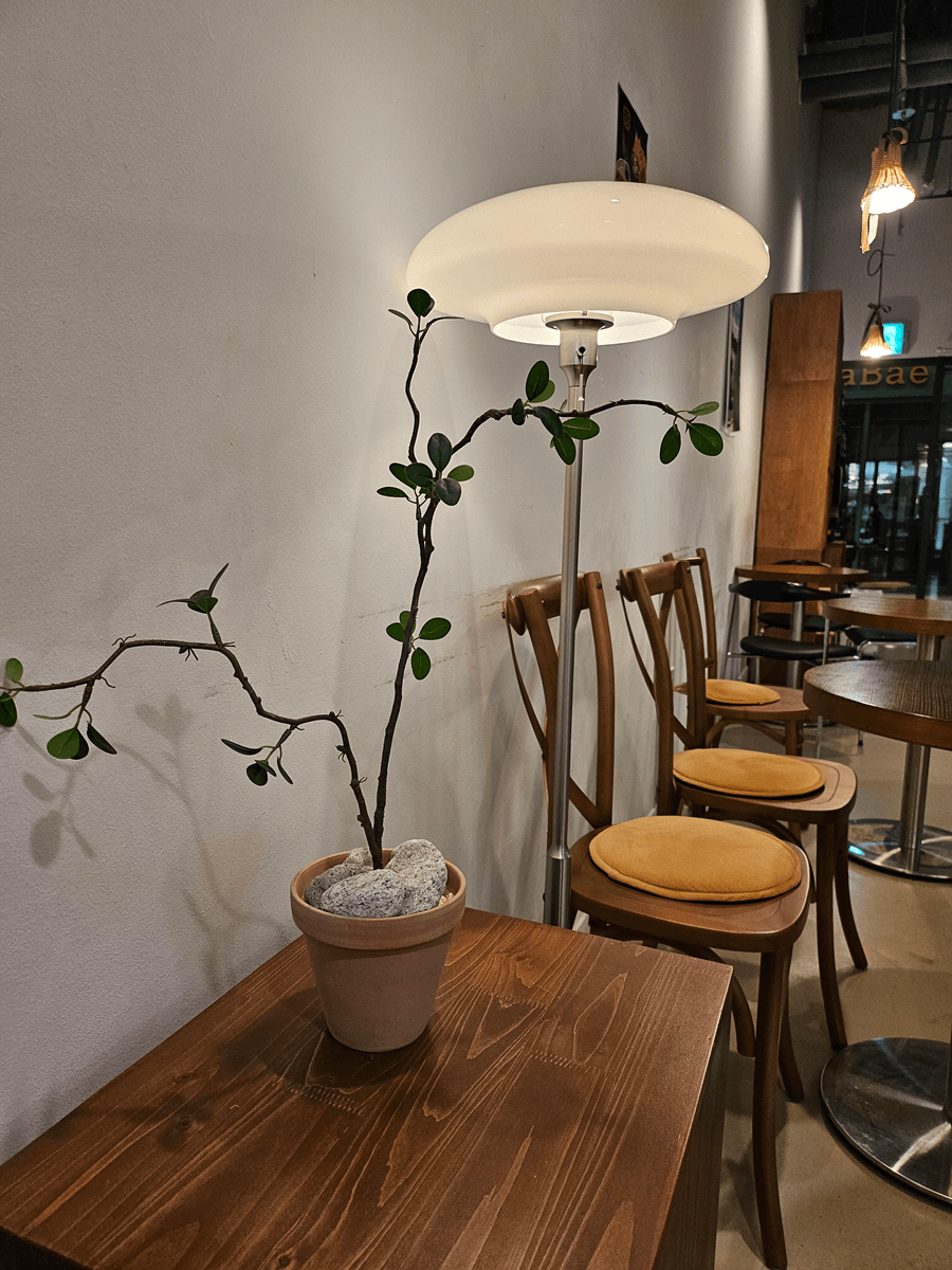 우드톤의 내추럴하고 편안한 인테리어에 조명도 은은하여 분위기가 좋습니다.